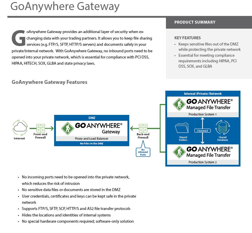 GoAnywhere Gateway apporte une couche supplémentaire de sécurité lors des échanges de données avec vos clients ou parteniares.