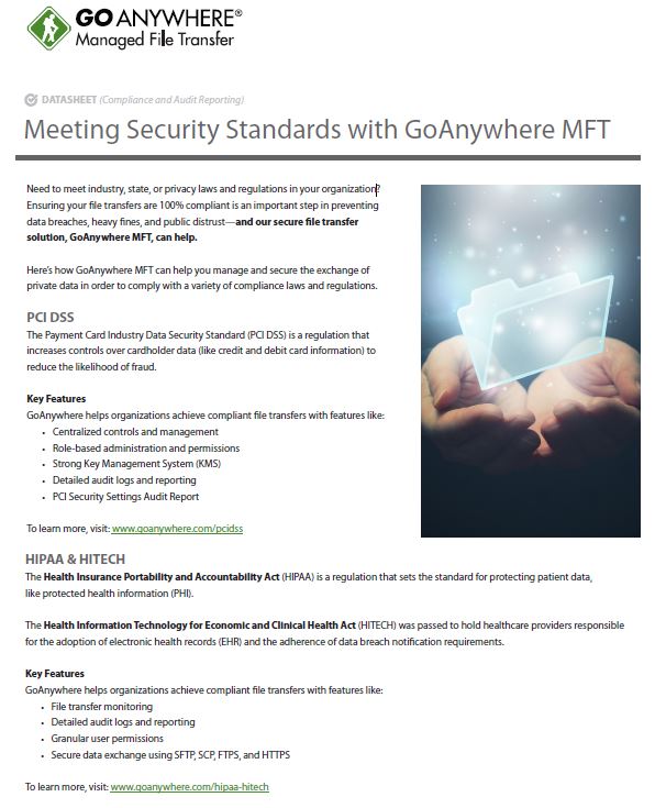 Need to meet industry, state, or privacy laws and regulations in your organization. This white paper explains how to meet Security Standards with GoAnywhere MFT. 2 pages