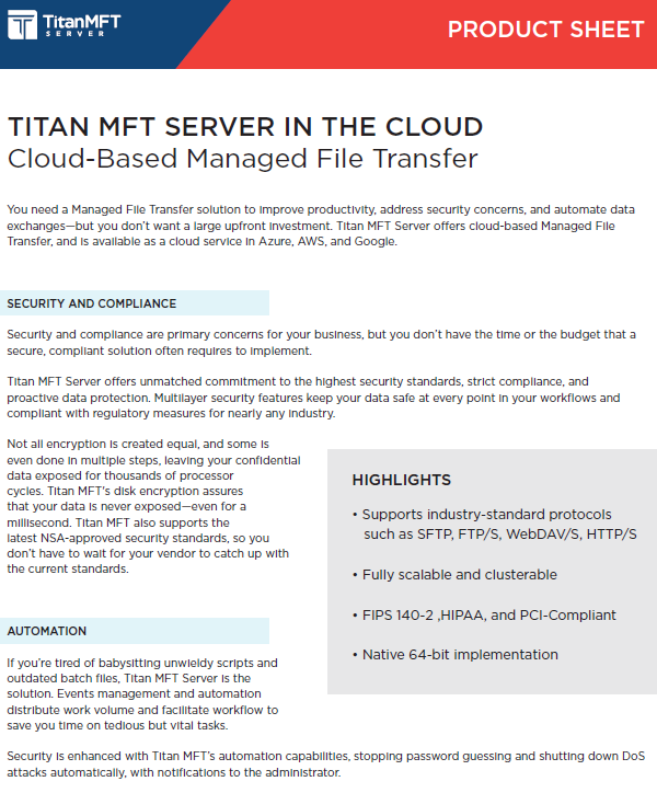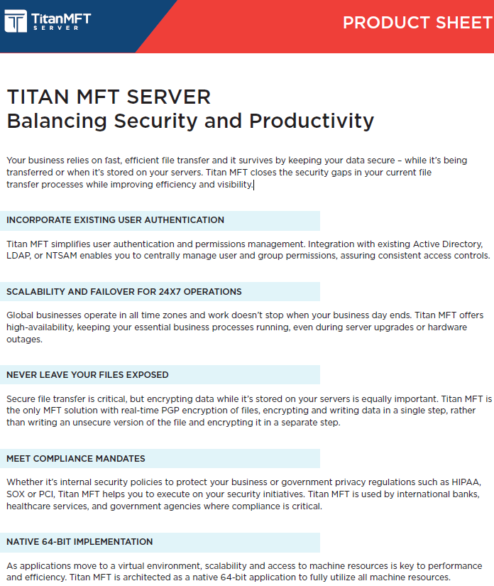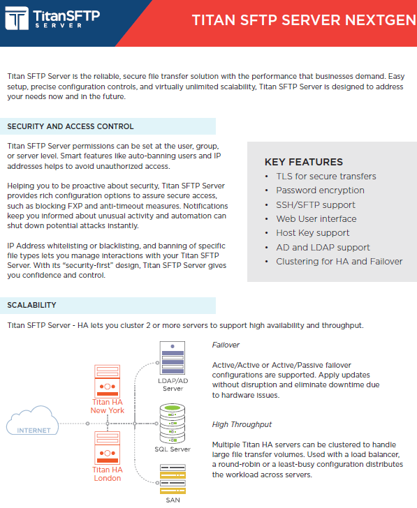 Titan SFTP Server est une solution de transfert de fichiers fiable et sécurisée offrant les performances exigées par les entreprises.